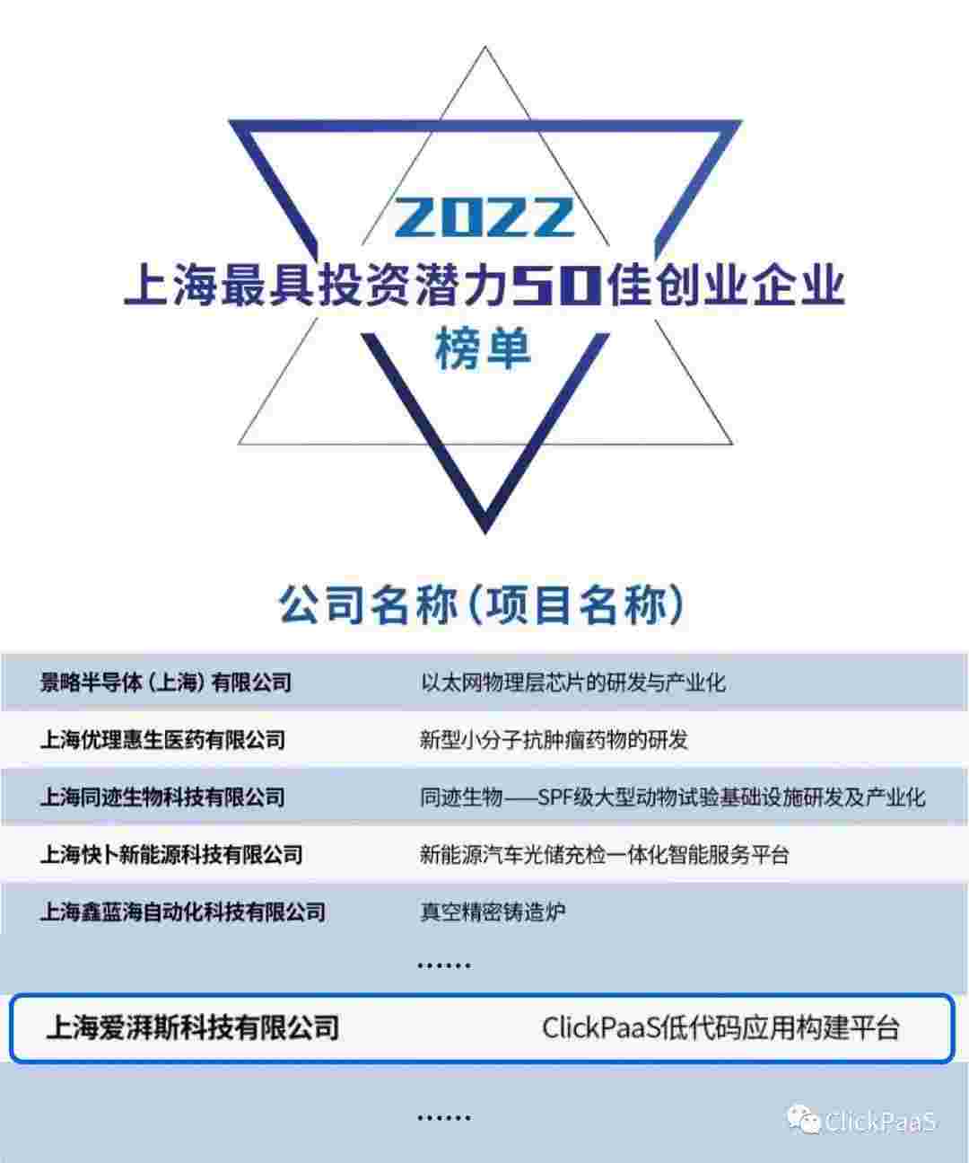 GOPAY钱包 作为国内低代码PaaS平台的领军企业,,与120家创企入围角逐。。。。期间接受了来自德同资本、、、、领中资本等知名投资机构的10位投资人组成专家评委团的背靠背盲选。。。并最终入围“2022上海最具投资潜力50佳创业企业”榜单,,,被列入“上海市重点培育创业企业库”。。。